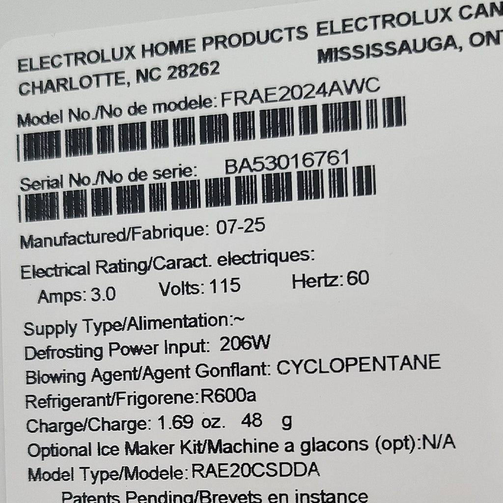 Open box Frigidaire All Refrigerator 32 inch, 19.6 cu. ft. Mod# FRAE2024AWC