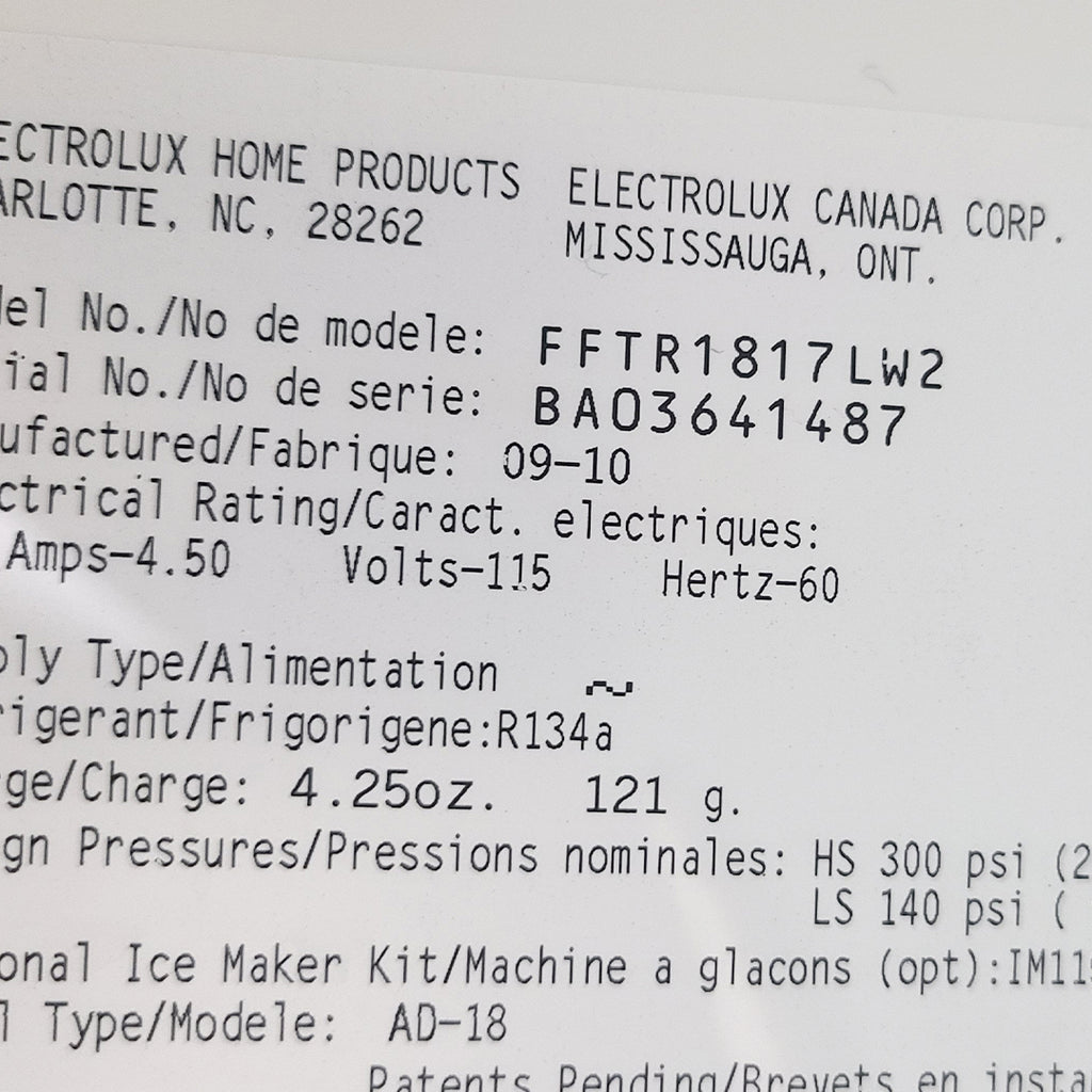 Used Frigidaire Refrigerator Model No. FFTR1817LW2