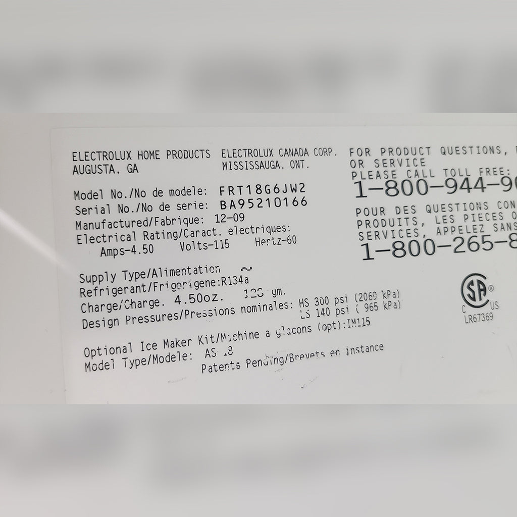Frigidaire Refrigerator Model No. FRT18G6JW2