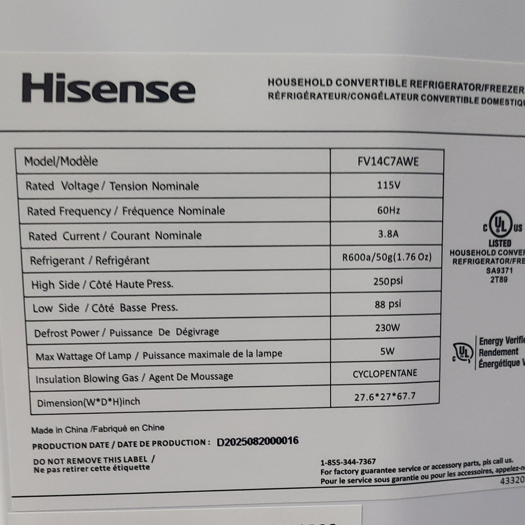 Open Box Hisense 14 cu.ft. Convertible Upright Fridge or Freezer with Pocket Handle Model No FV14C7AWE