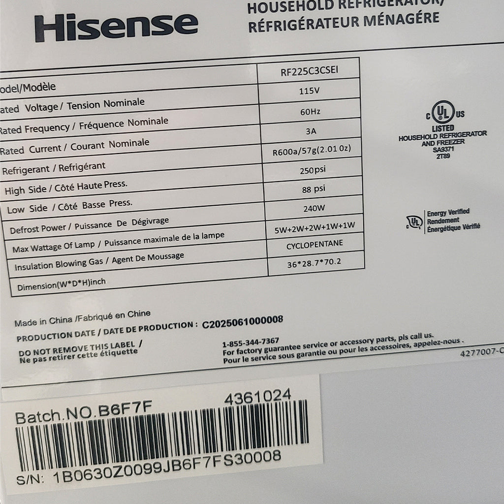 Open Box Hisense 36in 22.5cu ft. Counter Depth French Door Refrigerator with Water Dispenser and Ice Maker Mod# RF225C3CSEI