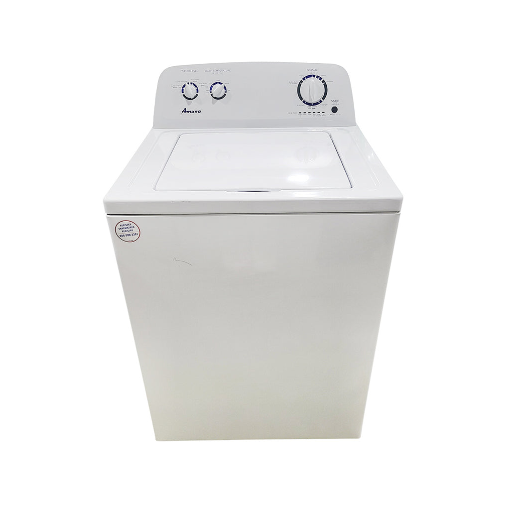 • Description:  This 4.0 cu. ft. Amana® Top-Load Washer delivers a thorough, even clean with a Dual Action Agitator, which rolls clothes through the bottom of the wash basket. Its durable Porcelain Tub helps protect your favorites from snags, while the Deep Water Wash Option1 adds more water during the rinse cycle for added confidence.