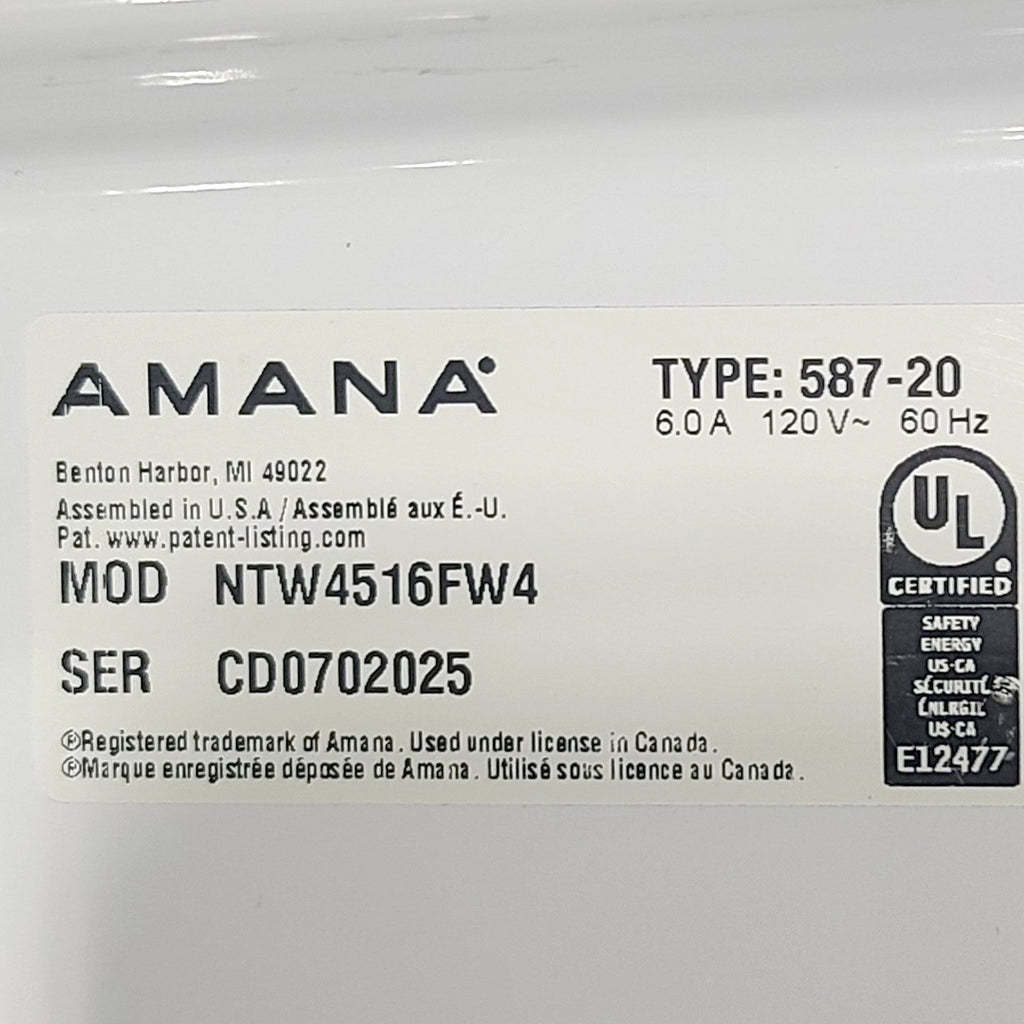 Used Amana Washer Model No. NTW4516FW4 Serial: CD0702025