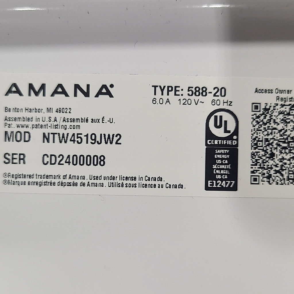 • Description: 4.4 cu. Ft Top Load Washer. This 4.4 cu. ft. Amana Top-Load Washer delivers a thorough, even clean with a Dual Action Agitator, which rolls clothes through the bottom of the wash basket. Its durable Stainless Steel Tub helps protect your favorites from snags, while the Deep Water Wash Option adds more water during the rinse cycle for added confidence.