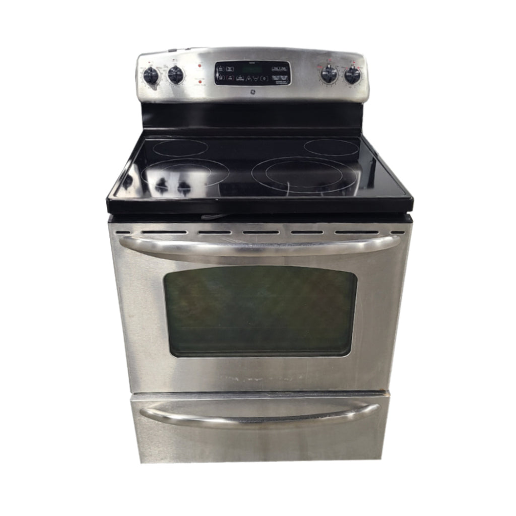 • Description: Electric Range, 30 inch Exterior Width, 4 Burners, 4.8 cu. ft. Capacity, Storage Drawer, 1 Ovens, Stainless Steel colour