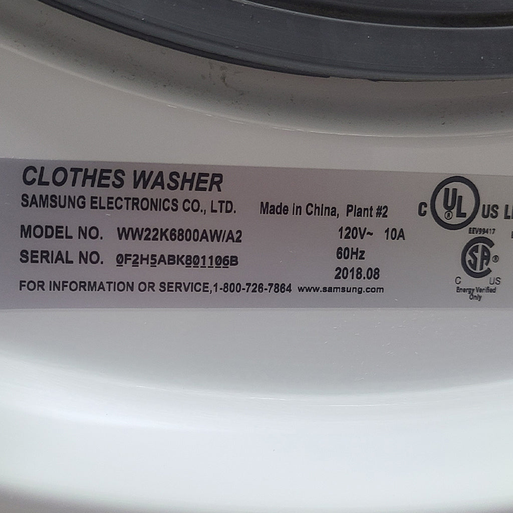 Used Samsung Apartment Size Washer Model No. WW22K6800AW/A2