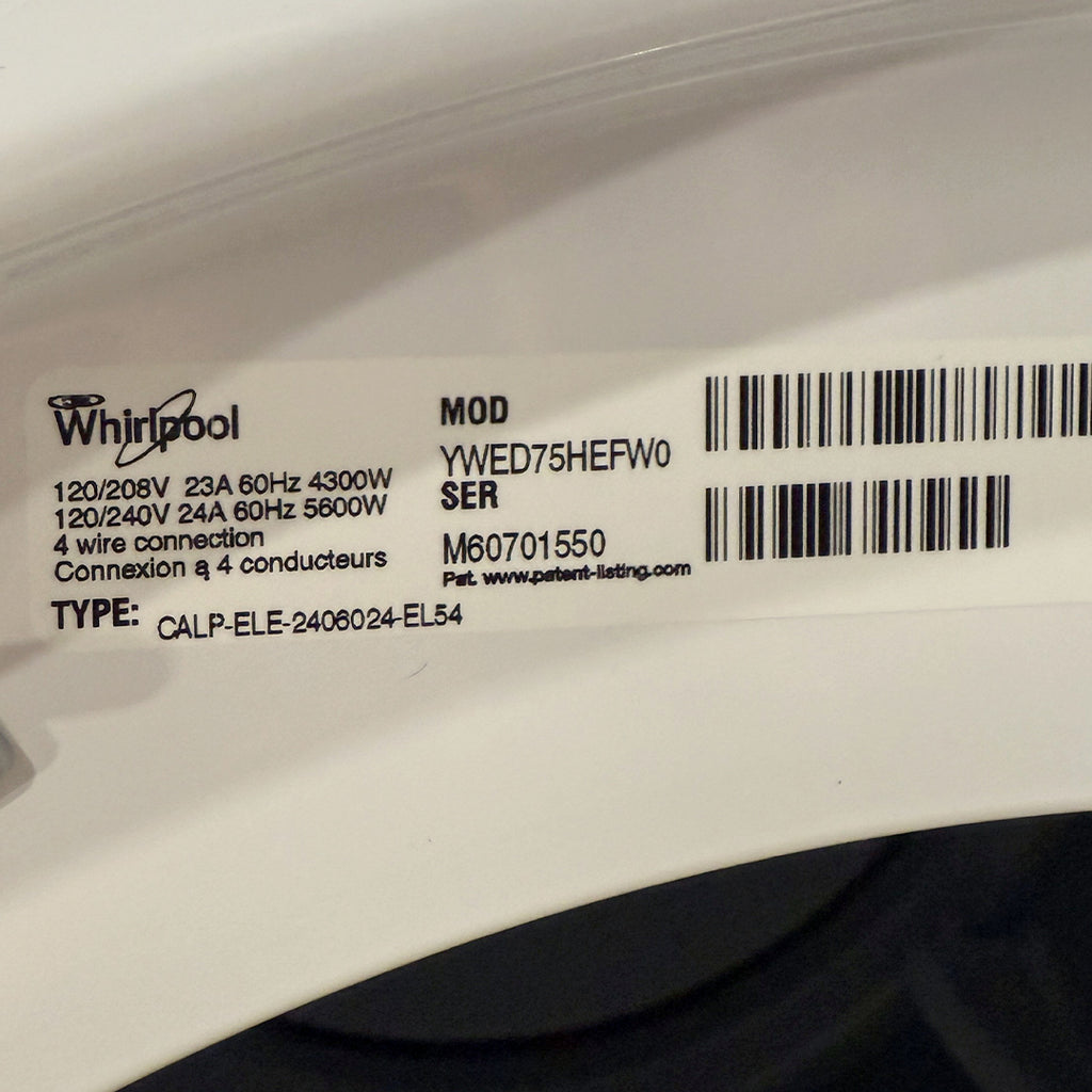 Used Whirlpool Electric Dryer Model No. YWED75HEFW0