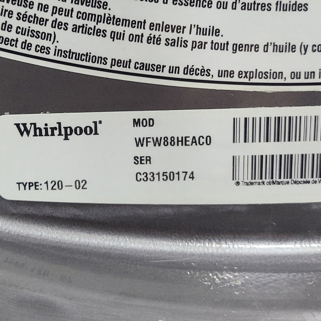 Used Whirlpool Washer and Dryer Set Model No. YWED88HEAC1 - WFW88HEAC0