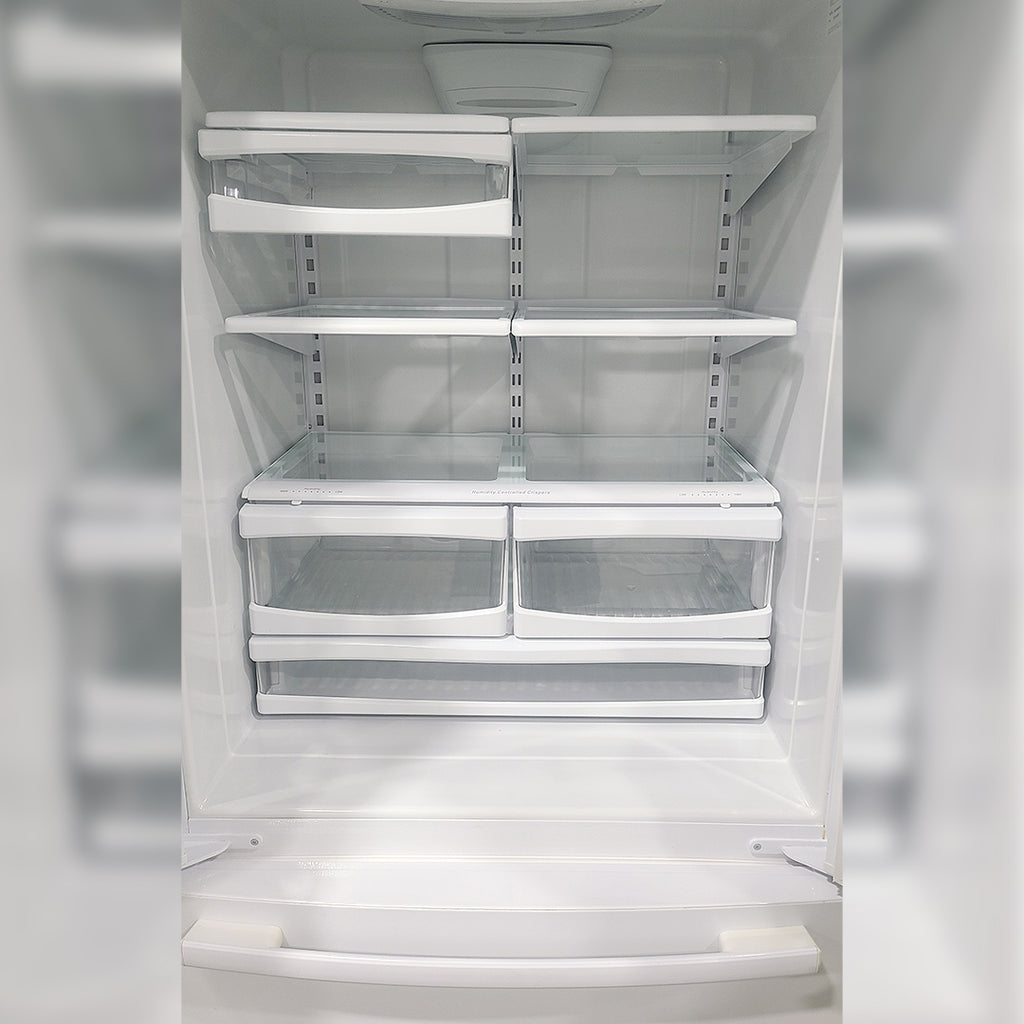 • Description: French Door Refrigerator, 33in, 22.0 cu.ft, with Contour Doors with Hidden Hinges, Energy Star Certified, 4 Split Shelves, Spillproof Glass Shelves and Digital Temperature.