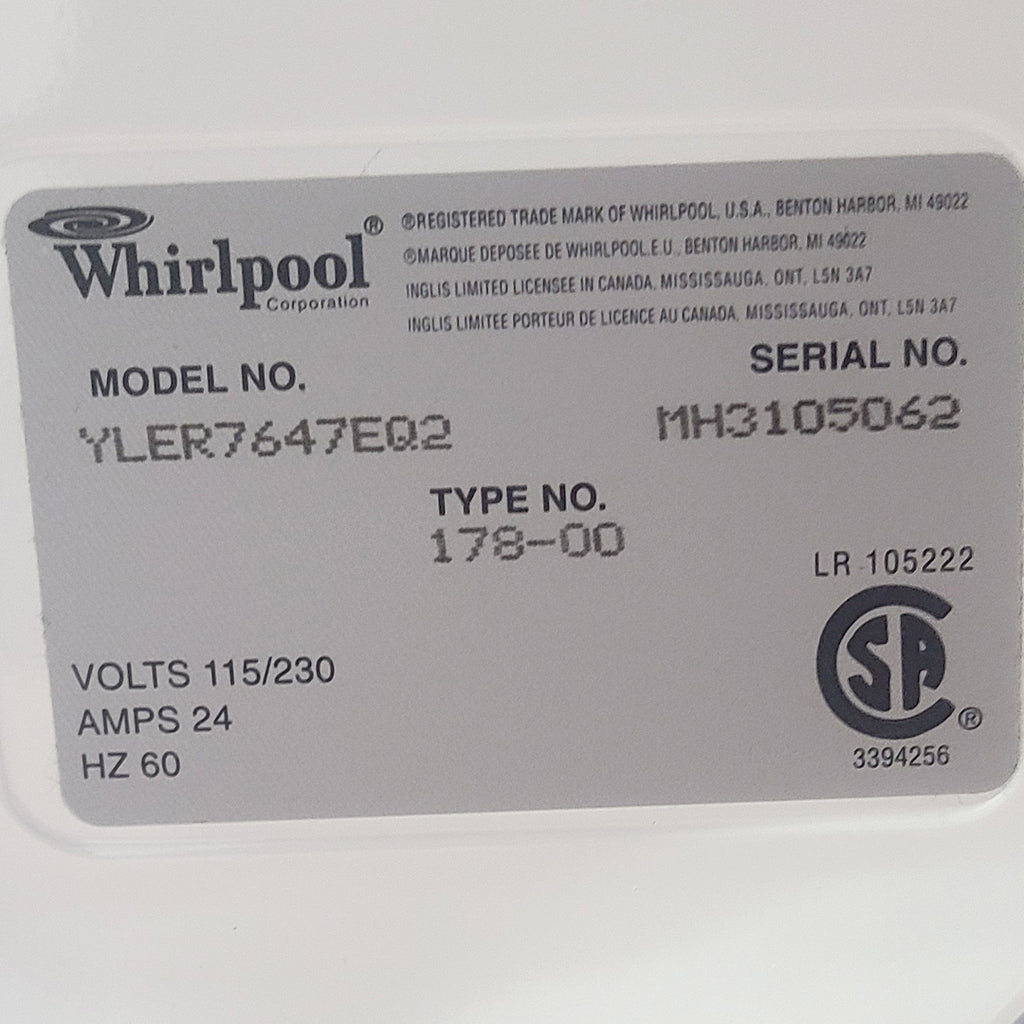 Used Whirlpool Washer and Dryer Set Model No. YLSR8233EQ0 - YLER7647EQ2